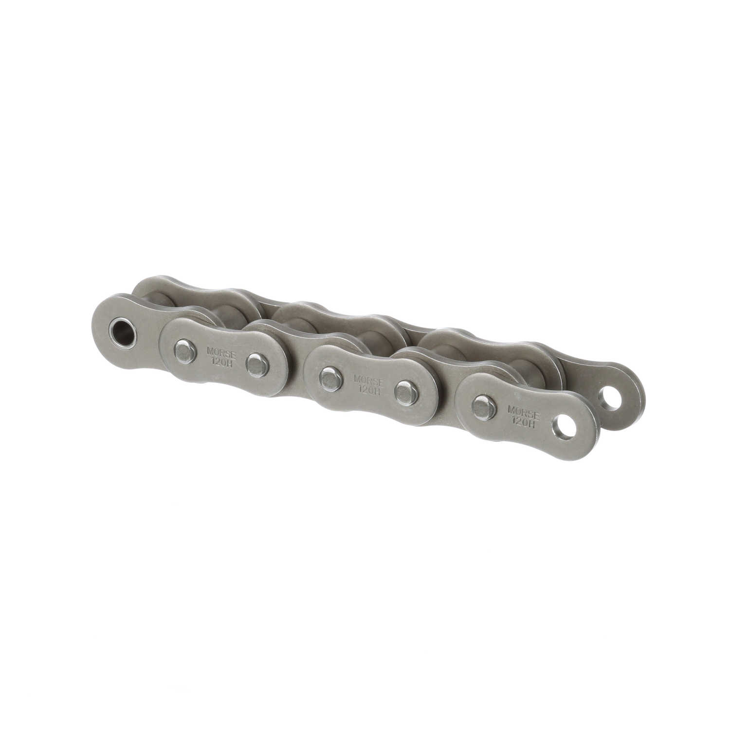 Roller Chain; 120 Chain Size; Riveted; 1-1/2" Chain Pitch; High Strength Heavy Chain Series; 1 Strand; Alloy Steel; ANSI; 7/8" Roller Diameter; 1" Roller Width; 7/32" Plate Thickness; 1.4" Plate Height; Curved; 0.437" Pin Diameter