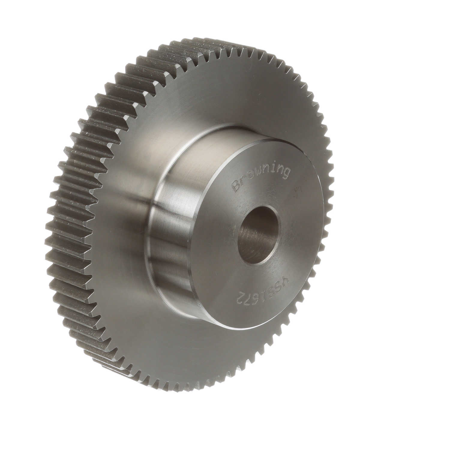 Spur Gear; 4-1/2" Pitch Diameter; 16 DP; 3/4" Face Width; Rough Bore; 72 Teeth; 20 Pressure Angle; No Bushing; Minimum Plain Bore; 1.625" Max Bore; 2-1/2" Hub Diameter; Steel; No Hardened Teeth
