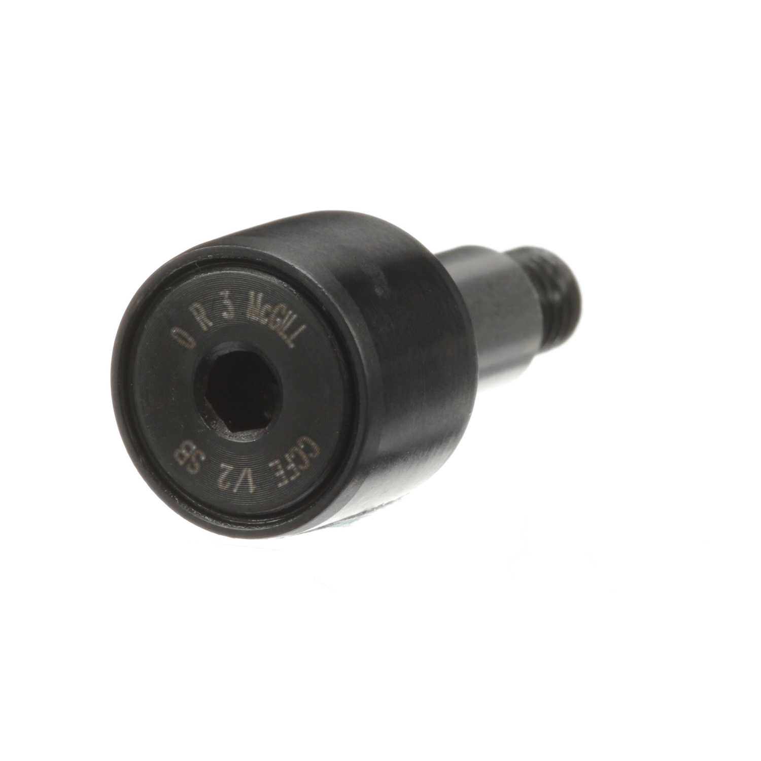 Cam Follower Bearing; 1/2" Roller Diameter; 3/8" Roller Width; Crowned Roller Surface; Stud Type; 0.19" Stud Diameter; 10-32 Thread; Standard Stud With Eccentric Bushing; Sealed; Needle Bearing; Relubricatable; Hex Socket