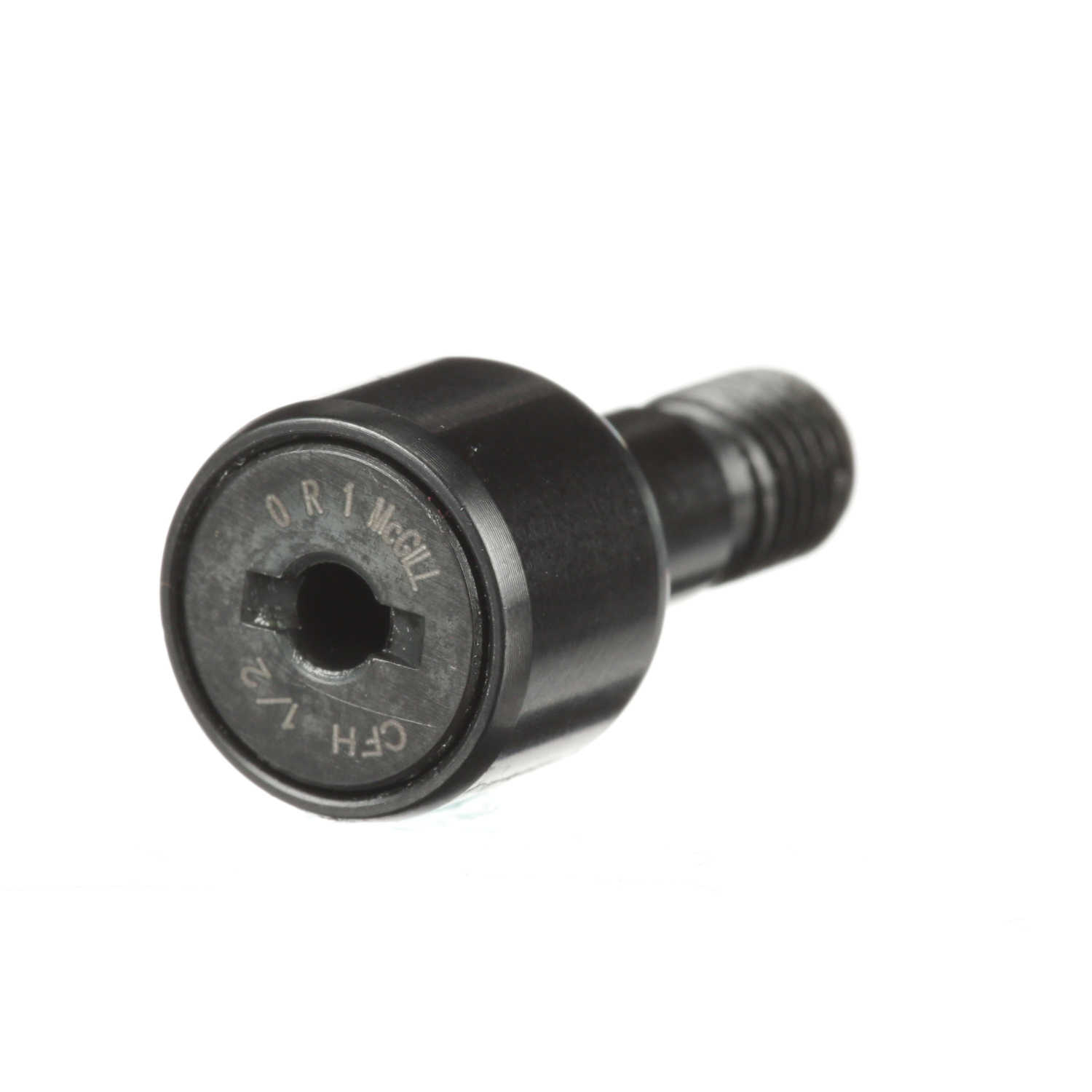 Cam Follower Bearing; 1/2" Roller Diameter; 3/8" Roller Width; Flat Roller Surface; Stud Type; 1/4" Stud Diameter; 1/4-28 Thread; Heavy Stud; Open; Needle Bearing; Relubricatable; No Hex Socket