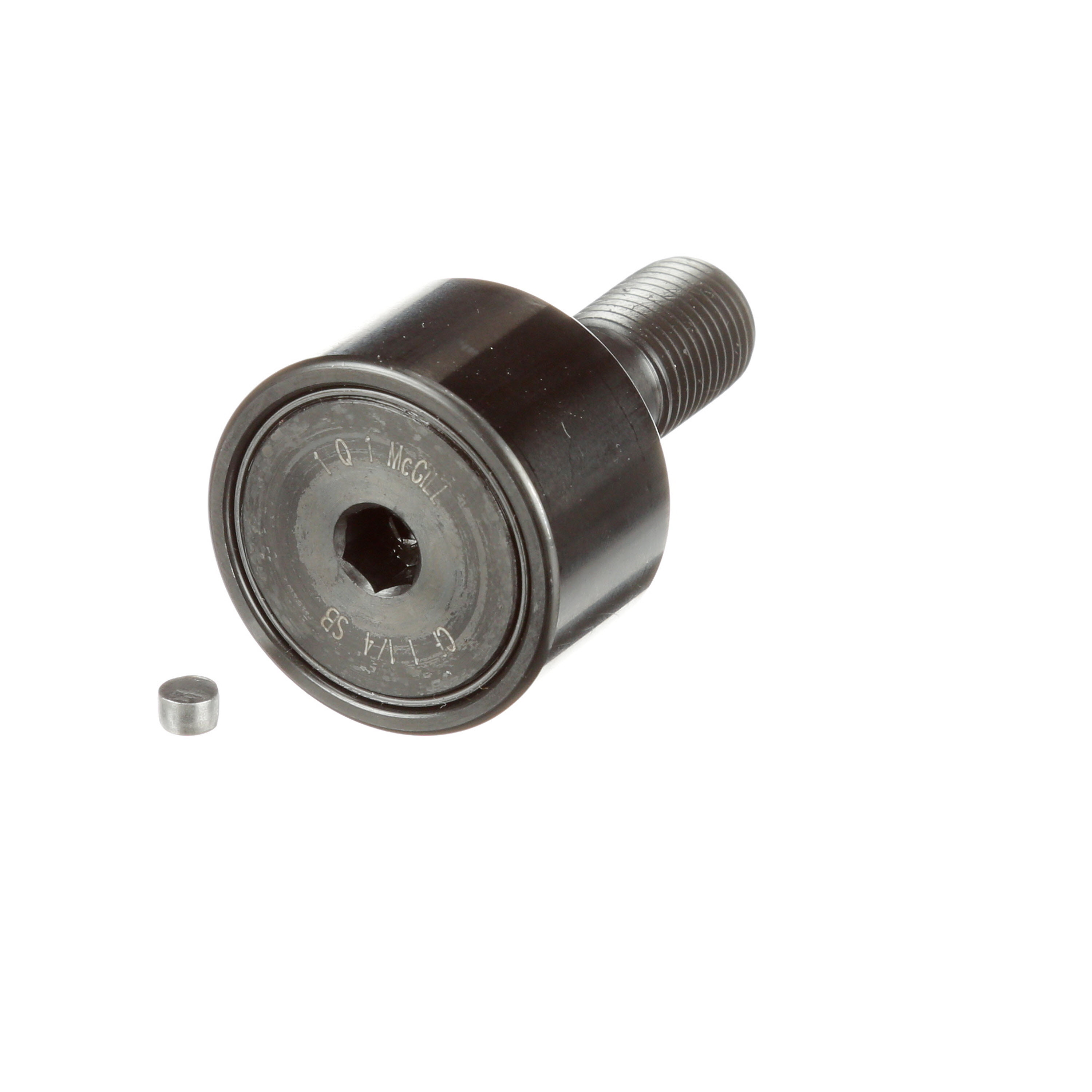 Cam Follower Bearing; 1-1/4" Roller Diameter; 3/4" Roller Width; Flat Roller Surface; Stud Type; 1/2" Stud Diameter; 1/2-20 Thread; Standard Stud; Sealed; Needle Bearing; Relubricatable; Hex Socket