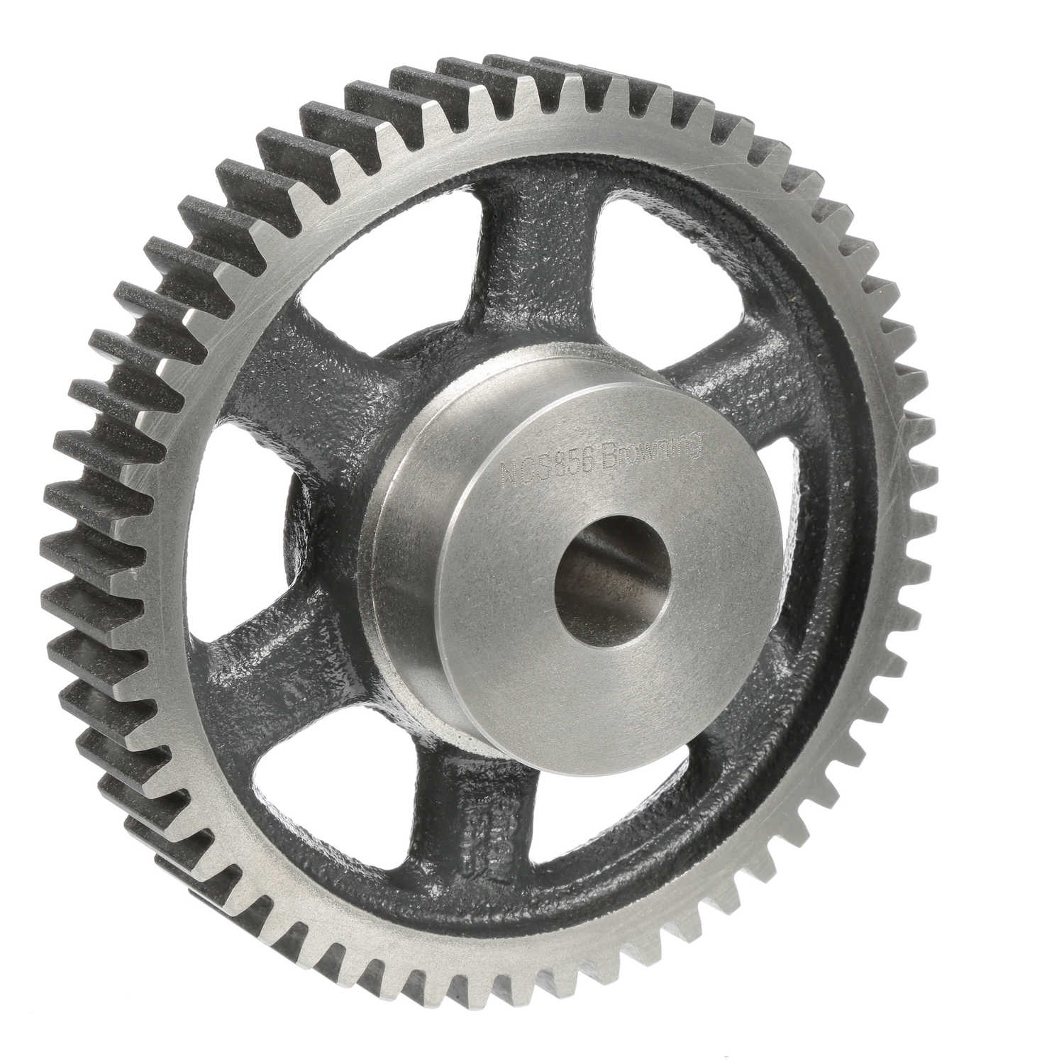 Spur Gear; 7" Pitch Diameter; 8 DP; 1-1/4" Face Width; Rough Bore; 56 Teeth; 14.5 Pressure Angle; No Bushing; Minimum Plain Bore; 1.813" Max Bore; 3" Hub Diameter; Cast Iron; No Hardened Teeth