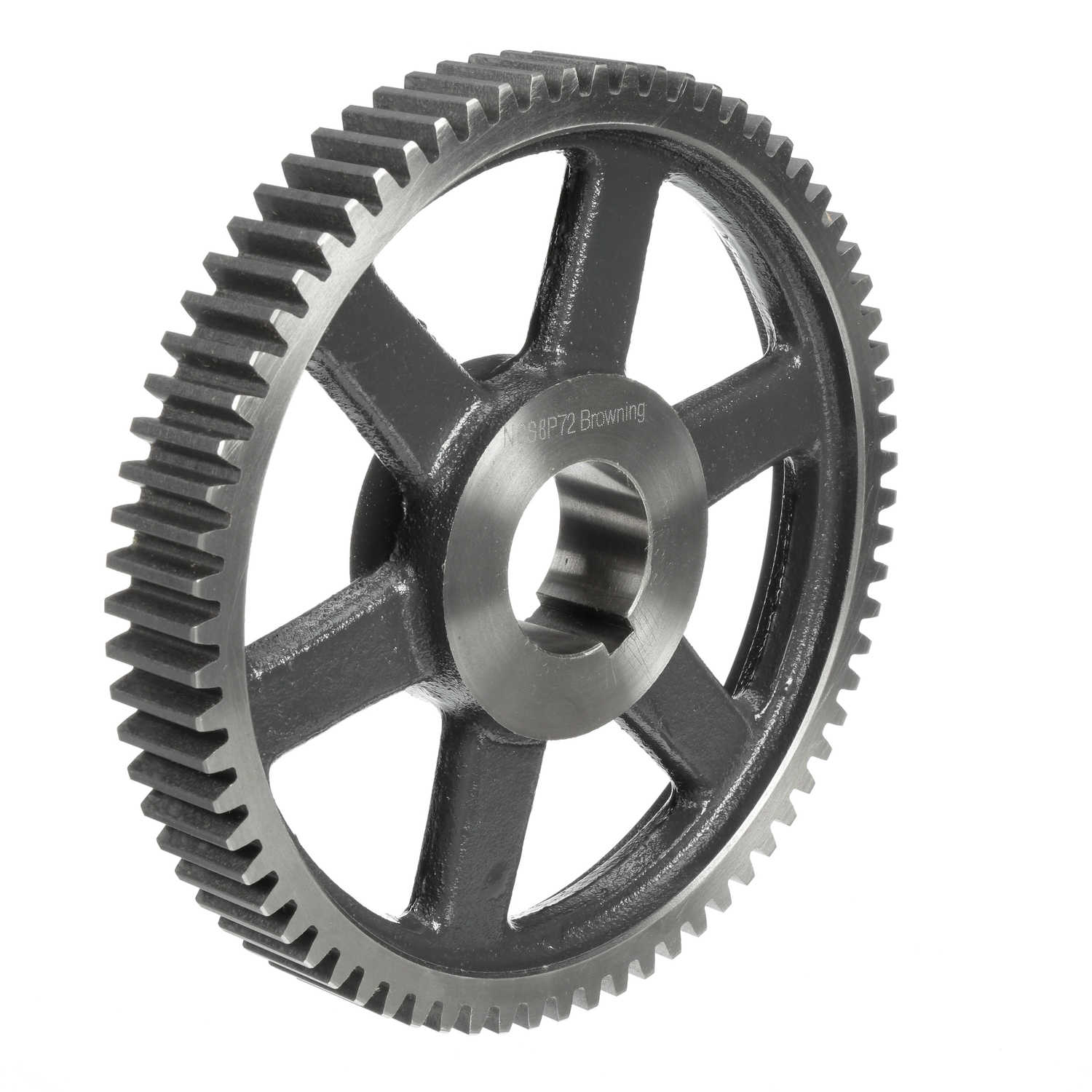 Spur Gear; 9" Pitch Diameter; 8 DP; 1-1/4" Face Width; Bushed; 72 Teeth; 14.5 Pressure Angle; P1; 1/2 To 1-3/4" Bushing Bore Range; No Minimum Plain Bore; 3" Hub Diameter; Cast Iron; No Hardened Teeth