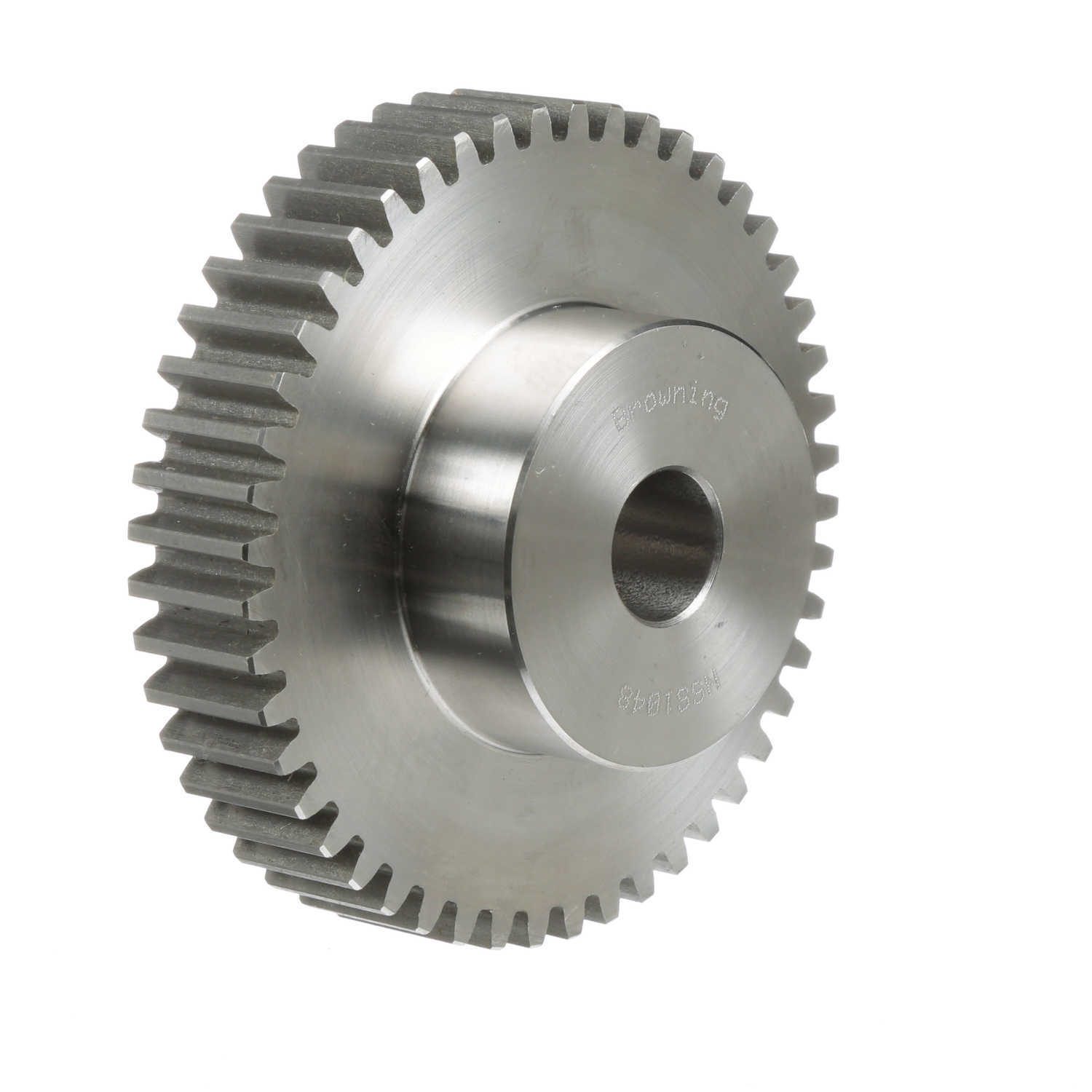 Spur Gear; 4.8" Pitch Diameter; 10 DP; 1" Face Width; Rough Bore; 48 Teeth; 14.5 Pressure Angle; No Bushing; Minimum Plain Bore; 1.75" Max Bore; 2-5/8" Hub Diameter; Steel; No Hardened Teeth