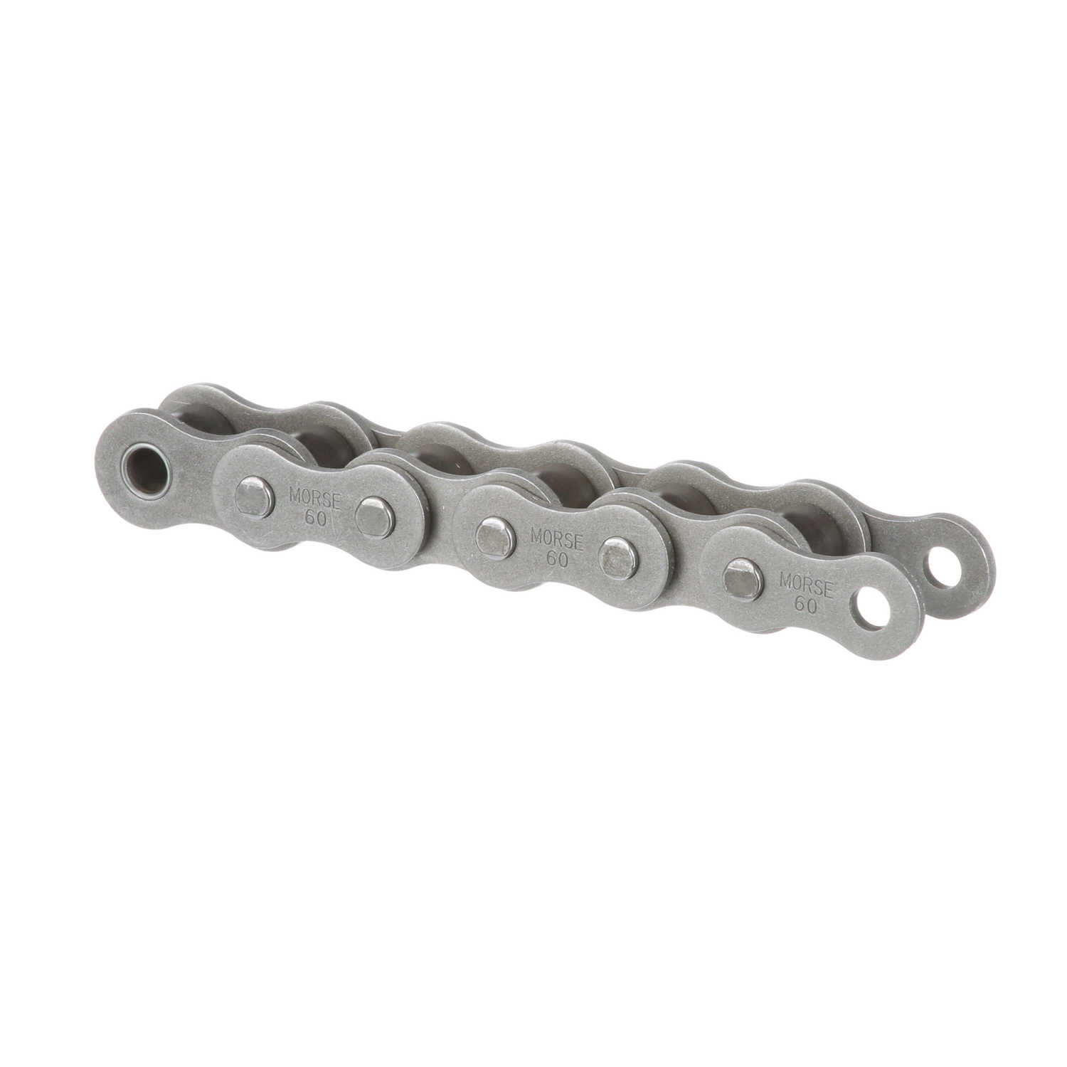 Roller Chain; 60 Chain Size; Riveted; 3/4" Chain Pitch; Standard Chain Series; 1 Strand; Carbon Steel; ANSI; 0.468" Roller Diameter; 1/2" Roller Width; 3/32" Plate Thickness; 0.7" Plate Height; Curved; 15/64" Pin Diameter